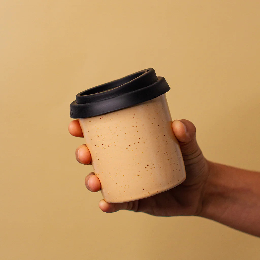 These reusable pottery coffee cups are perfect for drinks on the go. Or remove the lid and add a little colour to your home collection.