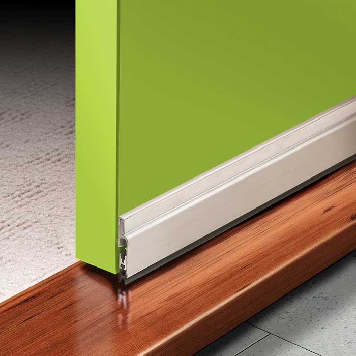 Seal your draughts and stop losing heat or cold through unsealed gaps in your home. This door seal is an adjustable, automatic door seal. Cleverly designed with a spring loaded seal to lift clear of the floor when the door is opened. The RP60 operates automatically by pressure against the door stop. All fixings are concealed. Suited for hinged doors 450mm to 920mm. Double and single inward opening. Easily installed DIY with a saw and screw driver.